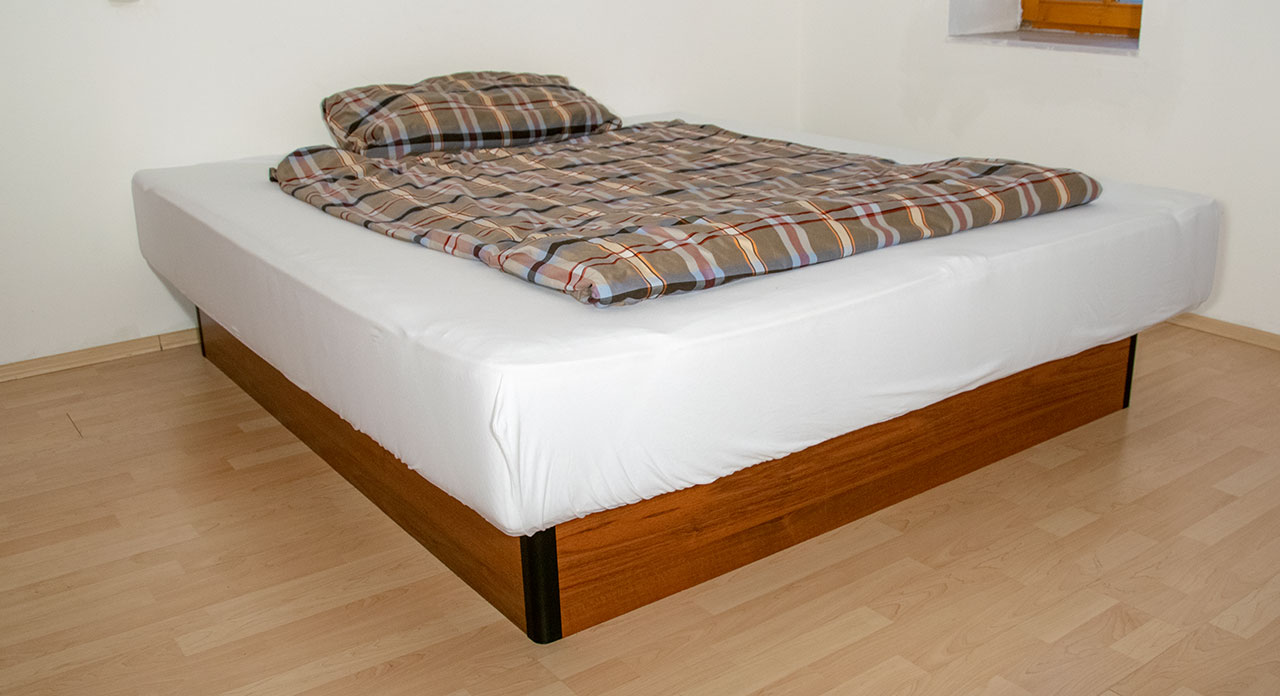 Wasserbett eingebaut in einen vorhandenem Holzbettrahmen